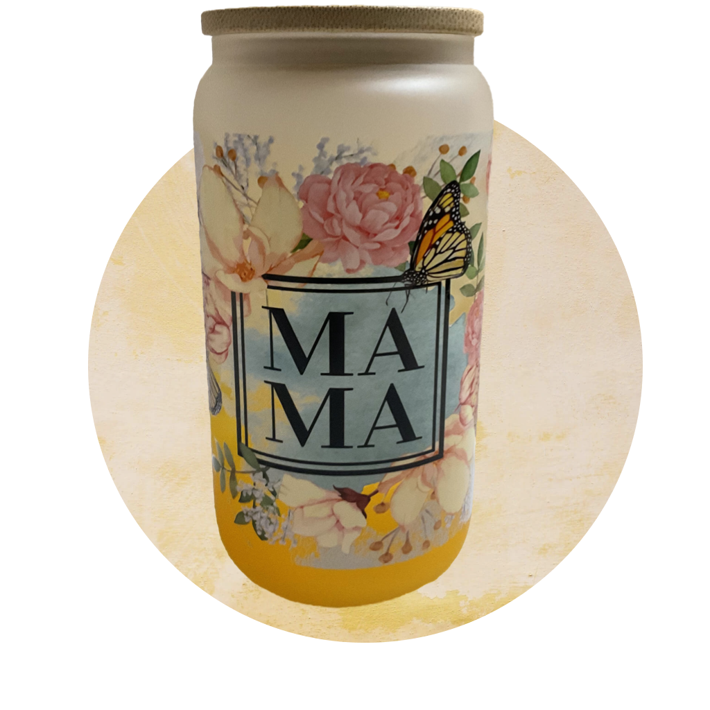 Show Mom some love with our Floral Mama glass tumbler! The playful yellow ombré design is perfect for Mother's Day, and the 16 oz size is just right for all her favorite drinks. Give the gift of love for mom this year with this quirky and fun tumbler.