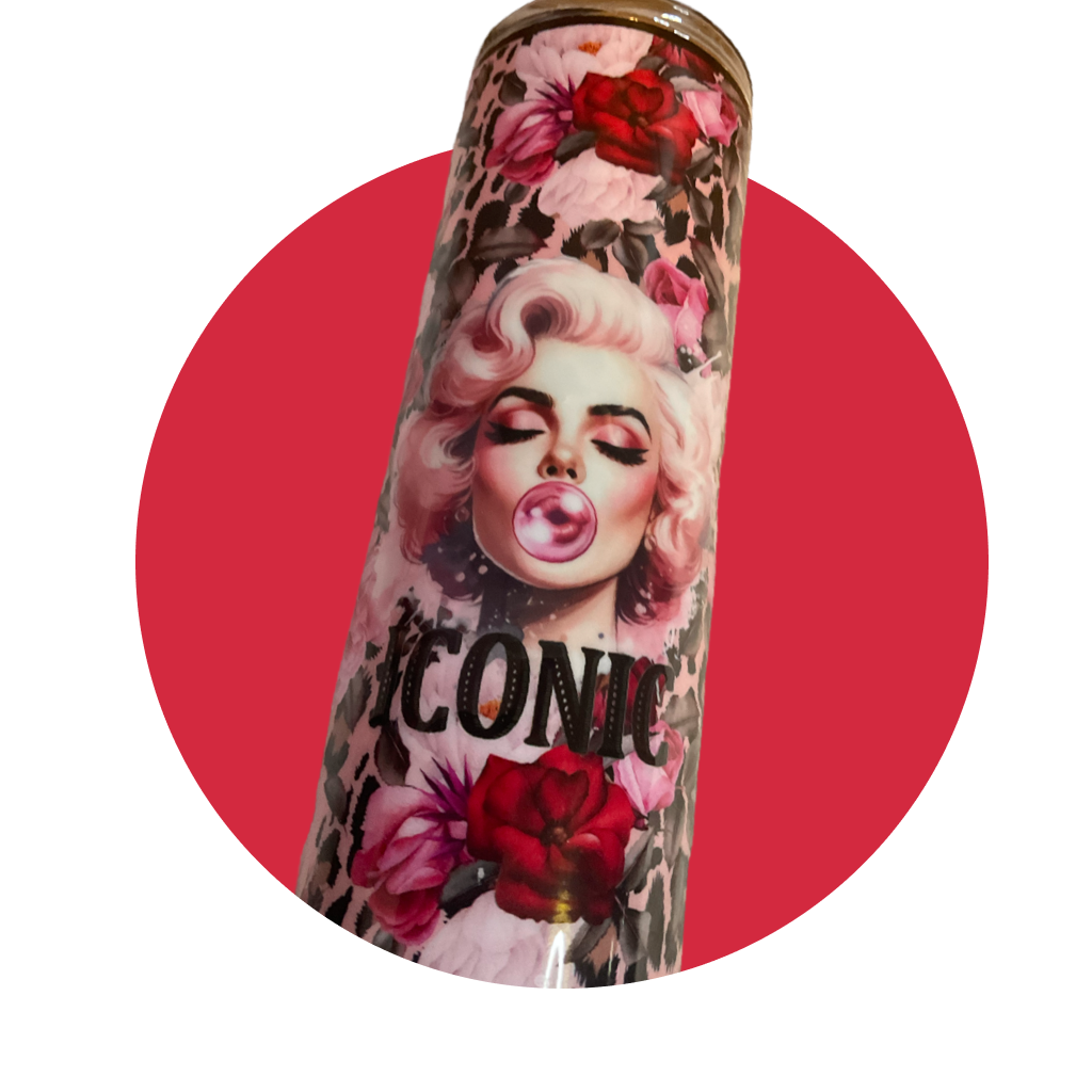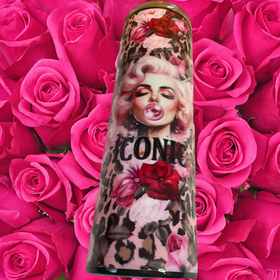 Introducing the Iconic tumbler, featuring a bold design of Marilyn Monroe surrounded by roses and leopard print. Keep your drink cold (or hot!) for hours in this loved-by-you stainless steel tumbler. Perfect for on-the-go sipping with a touch of glamour.