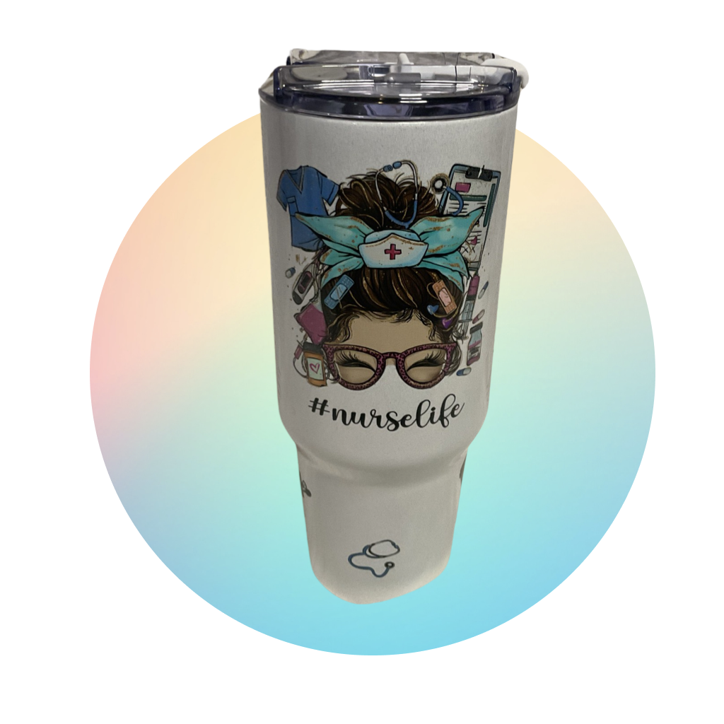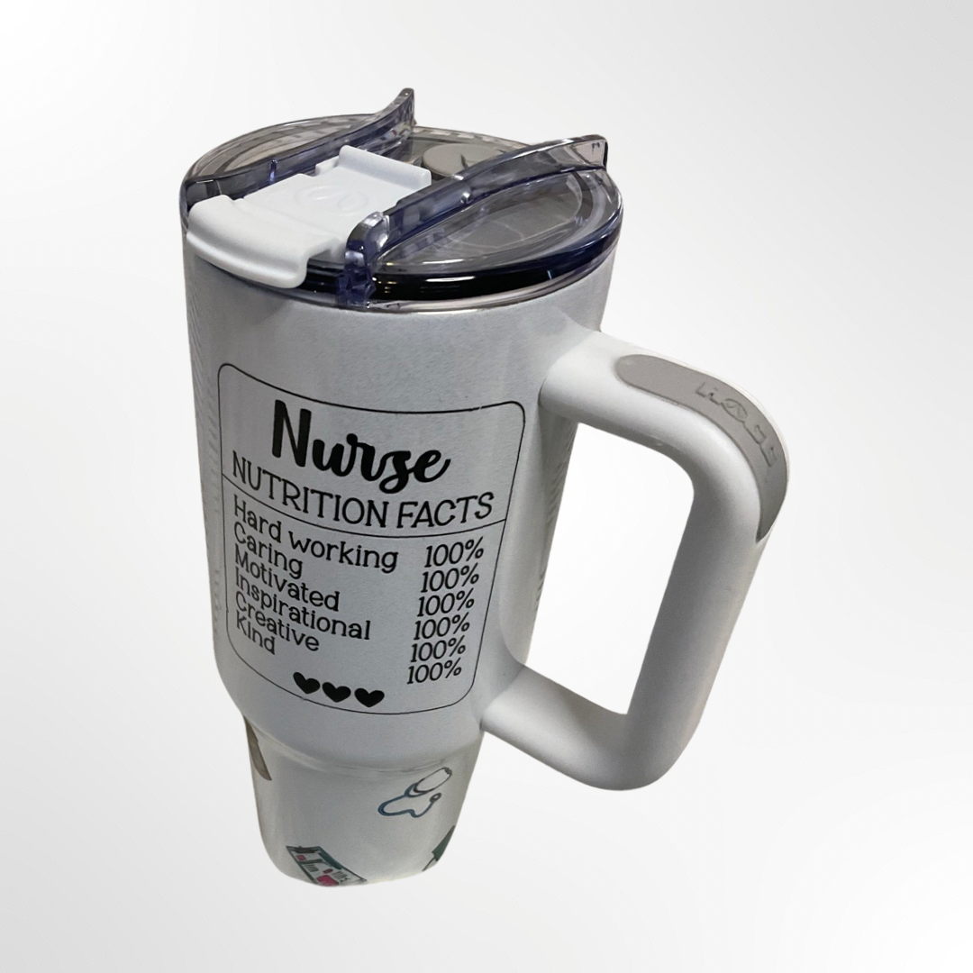 Stay hydrated on-the-go with the 40 oz Life of a Nurse bottle - the perfect Stanley dupe for those long shifts. Whether you're in scrubs or your nurse life is your lifestyle, this water bottle is a must-have companion. Drink up and keep saving lives!