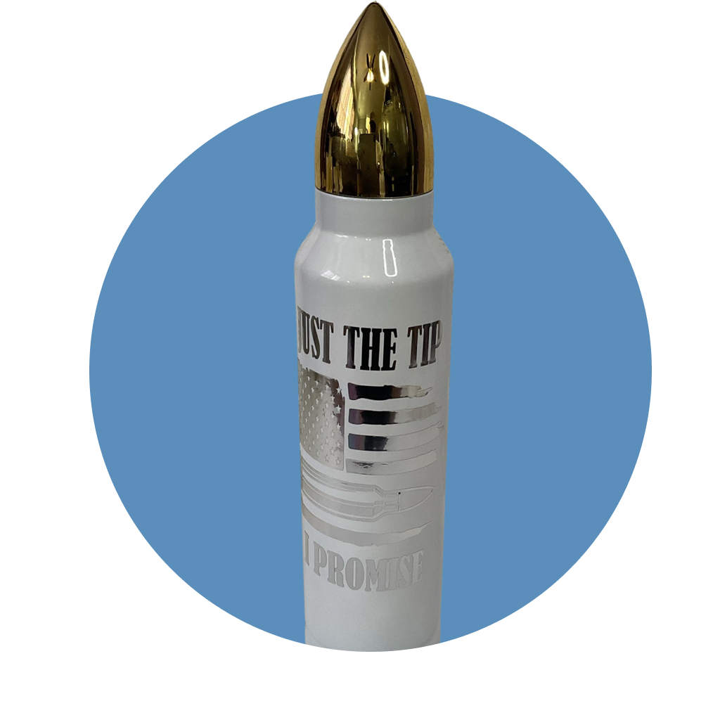 Treat yourself to the 32 oz Silver Just the Tip bullet tumbler - perfect for shots, cocktails, and any drink that packs a punch! This quirky tumbler will have you saying "just the tip" every time you pour. Get yours now and add some fun to your next party!